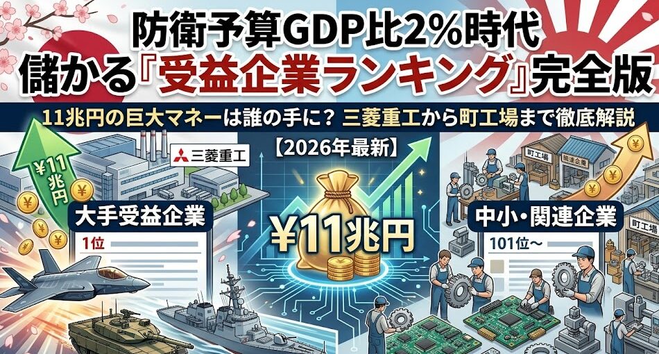 防衛予算GDP比2%時代の儲かる「受益企業ランキング」完全版|11兆円の巨大マネーは誰の手に?三菱重工から町工場まで徹底解説【2026年最新】