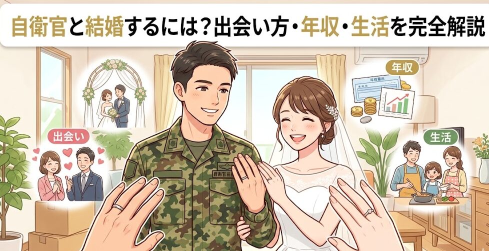 自衛官と結婚する方法を徹底解説。出会い方や婚活手段、給料・年収・退職金・官舎などの経済面、転勤や長期不在といった結婚生活の現実、妻としての注意点、新NISAでの資産形成まで完全網羅。自衛官と結婚を考える女性必見のガイドである。 -