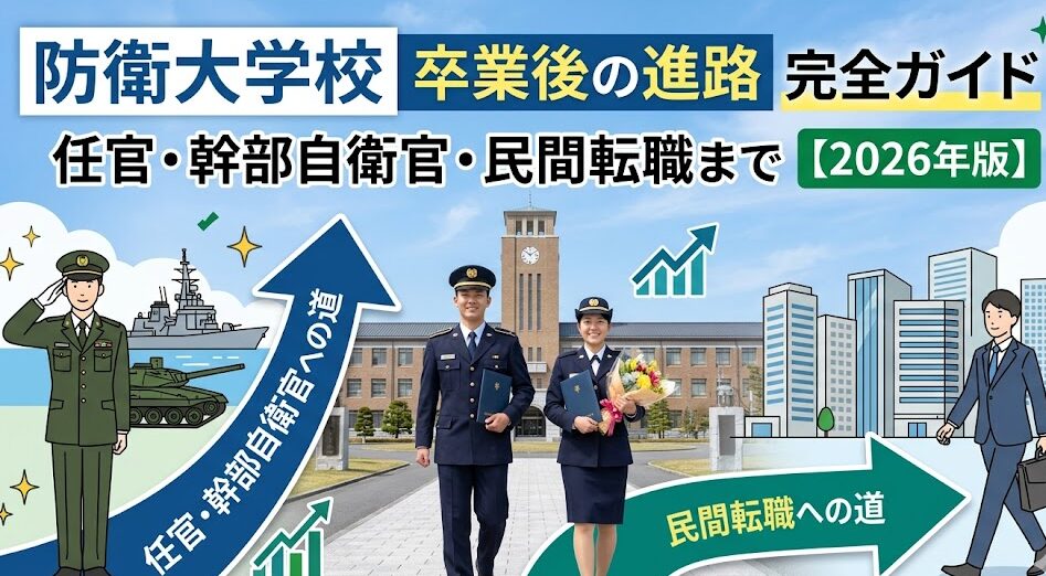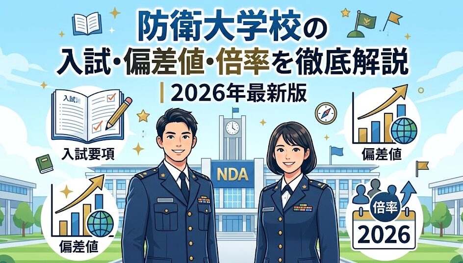 防衛大学校とは陸海空自衛隊の幹部候補を養成する4年制の省庁大学校で、学費無料+月額151,300円の手当が支給される。入試倍率・寮生活・卒業後の任官から任官辞退まで、受験生と保護者が知るべき全情報を1本に体系化した完全ガイド。 -
