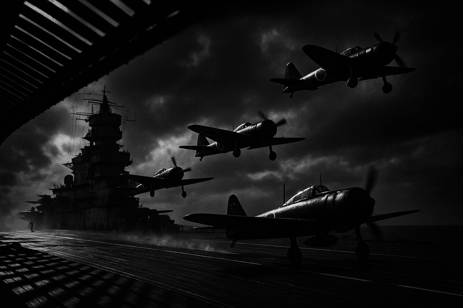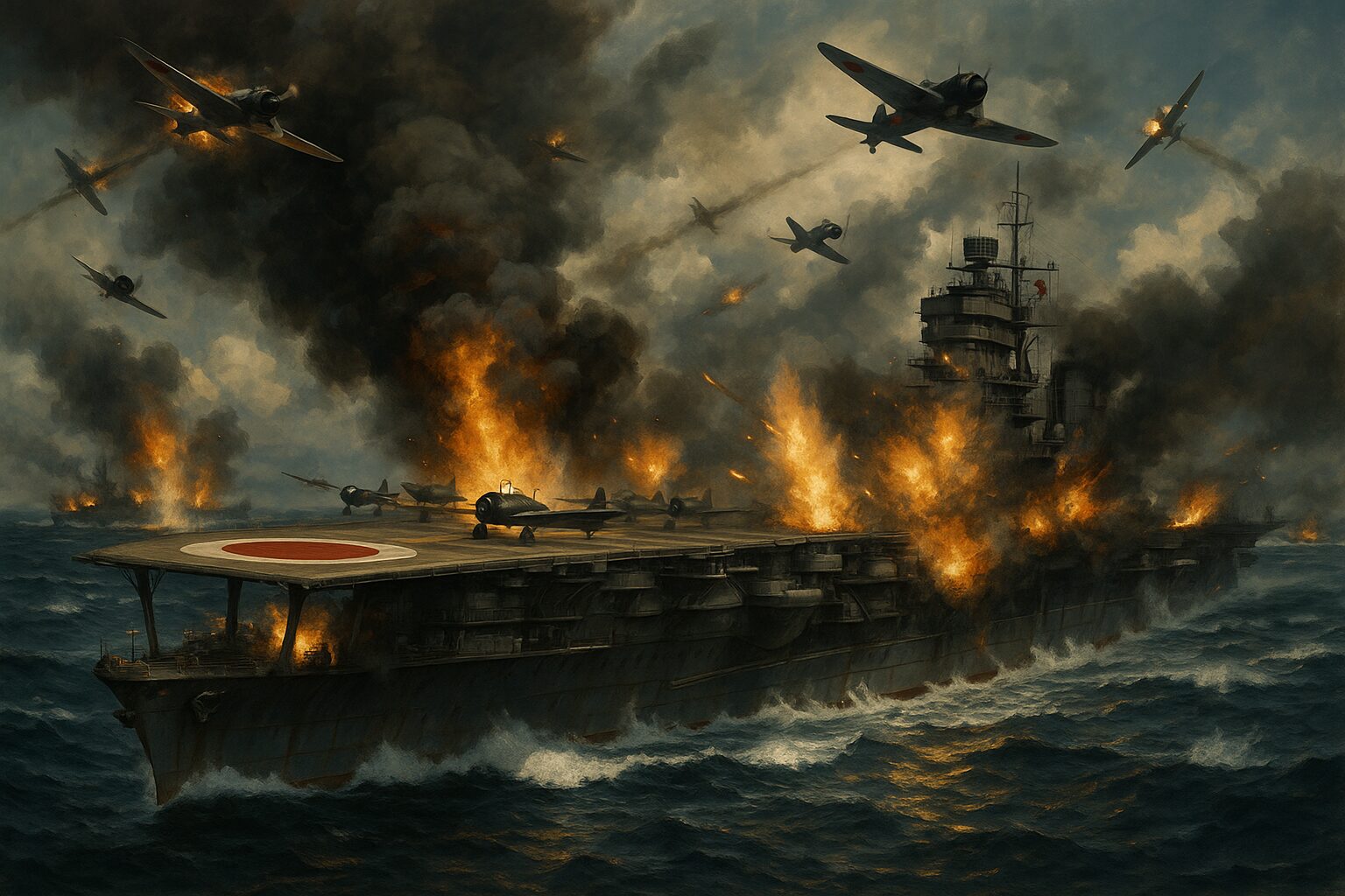 A. よくある「甲板ぎっしり爆装機」は再検証で修正。日本空母の基本は**“デッキロード”=一波ずつ回す運用で、被弾時甲板は空に近かった可能性**。問題は甲板下(格納庫)での再武装・給油文化でした(第7章)。