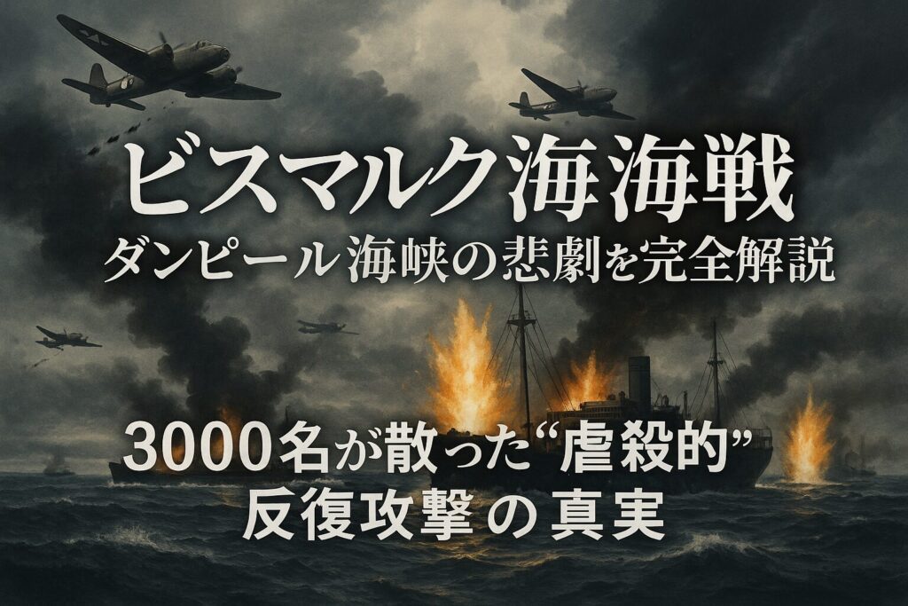 1943年3月、ビスマルク海で日本軍輸送船団が壊滅。輸送船8隻・駆逐艦4隻・3000名が散った「ダンピール海峡の悲劇」を完全解説。反跳爆撃の脅威と制空権喪失の代償とは? -