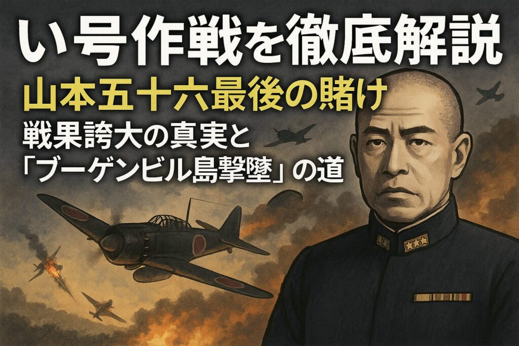 1943年4月、連合艦隊司令長官・山本五十六が指揮した最後の大規模航空作戦「い号作戦」。ラバウルから出撃した精鋭パイロットたちは何を狙い、何を得たのか?誇大報告の真実と、その2週間後に訪れた悲劇への道を、作戦の全貌から戦術・戦果・教訓まで徹底解説します。 -