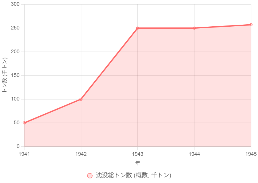 - 1943:通商破壊本格化もASW激化: インド洋・太平洋でピーク。約250,000トン。だが米護衛網で損失20隻超。