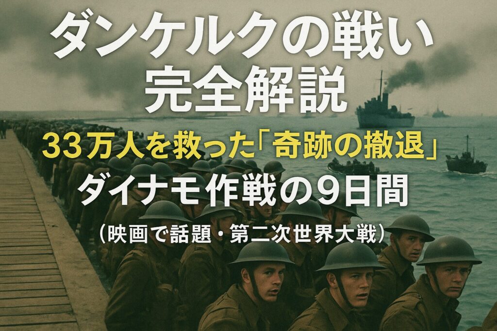 ダンケルクの戦いとダイナモ作戦を徹底解説。33万人を救った奇跡の撤退、ドイツ軍停止命令の謎、民間船の活躍、日本軍との比較まで。映画ファン必見の完全ガイド