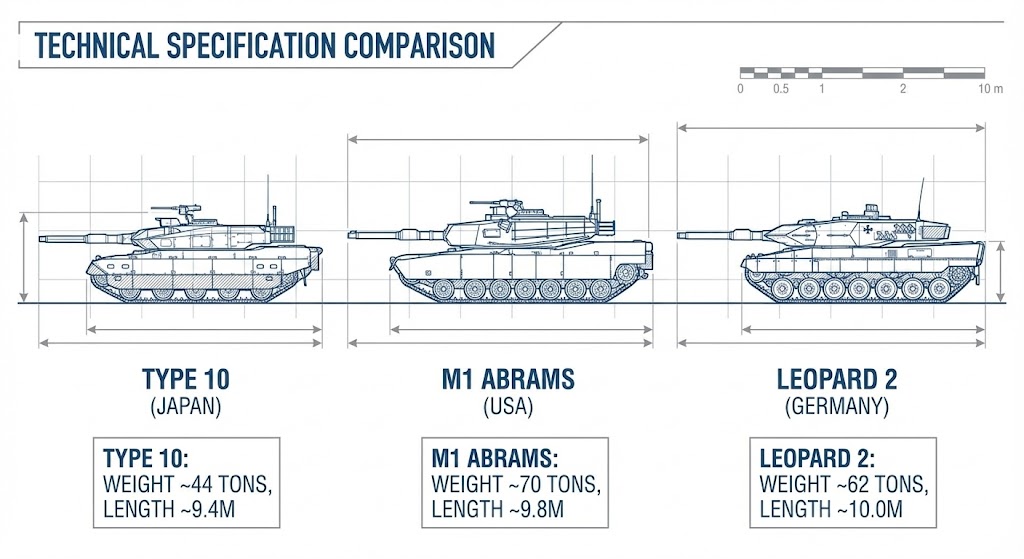 10式戦車との直接比較は難しいが、重量対性能比では10式が優れているとの見方もある。